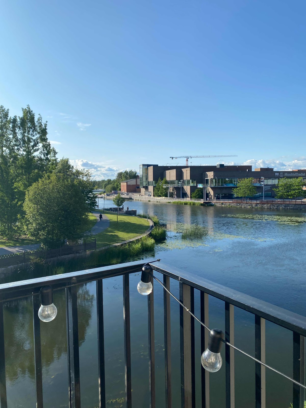 Igår kväll var jag på middag hos Lilla Systern. Det tar bara några minuter cykla till henne. Hon bor på en ö mitt i stan, har utsikt över ån och vi kunde sitta på hennes balkong långt ut på kvällen.